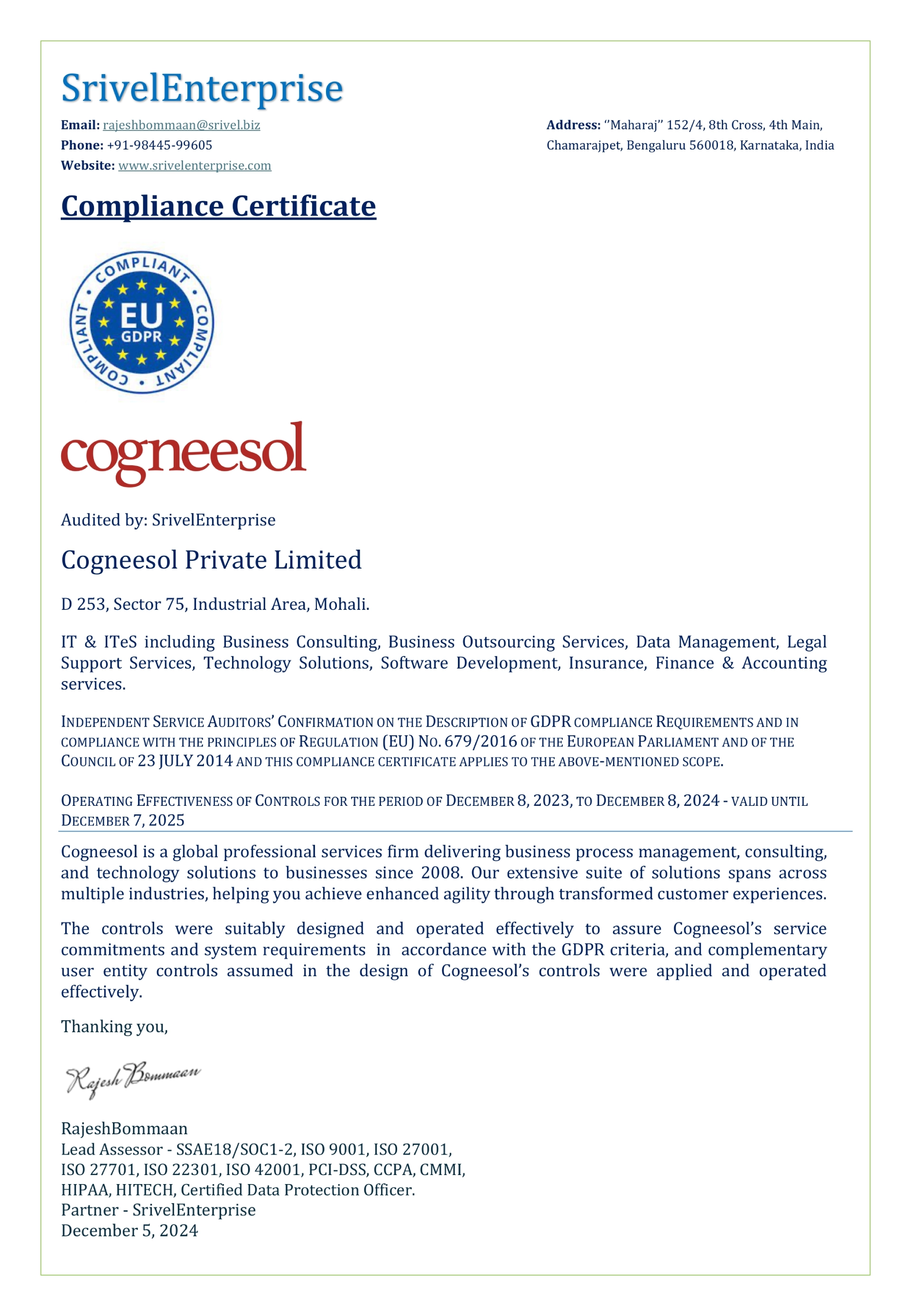 Cogneesol fosters a diverse, inclusive and equal environment ensuring complete opportunities and support for all employees, cultivating a workspace culture of mutual respect, and collaboration